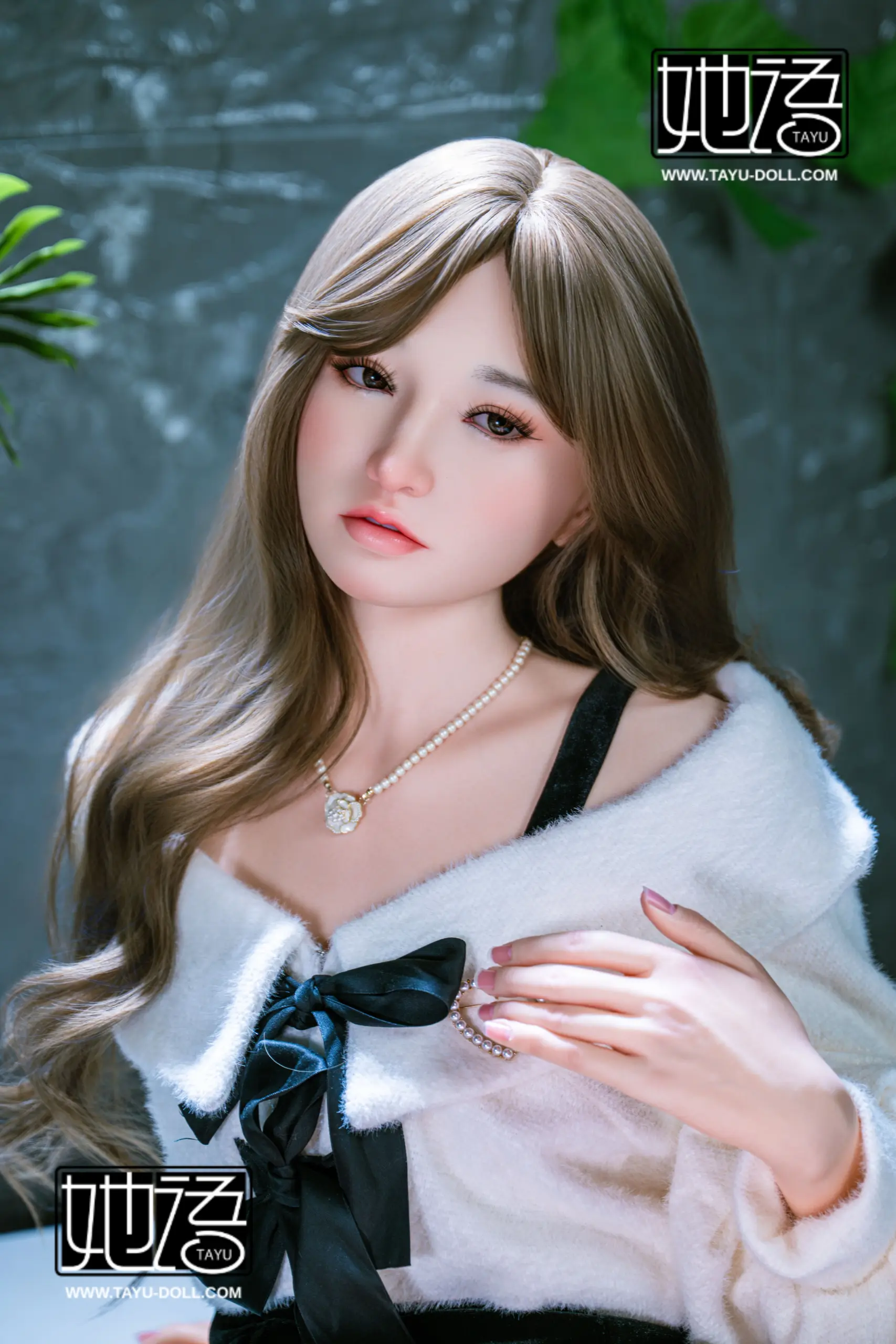 A gentle, lifelike presence defines this refined 160cm silhouette. Angel Head #12 features a soft facial sculpt with a calm gaze, subtle peach-toned makeup, and long wavy light-brown hair that frames her expression naturally. The outfit pairs a white off-the-shoulder sweater adorned with satin bows and a high-waisted black skirt with delicate embellishments. A pearl-style necklace adds a subtle focal point. This natural beauty figure offers a balanced and understated aesthetic, making it a versatile addition for collectors seeking realism and quiet elegance.